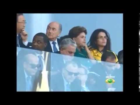 “Ei, Dilma, vai tomar no c…'', rosnava um pedaço da multidão. “Ei, Fifa, vai tomar no c…”, gania outra ala. Quando Dilma foi exibida no telão do estádio vibrando com o segundo gol do Brasil, arrostou, solitariamente, uma segunda onda de xingamentos. Após a comemoração do terceiro gol, ela ouviu um derradeiro urro: ‘Ei, Dilma, etc…”